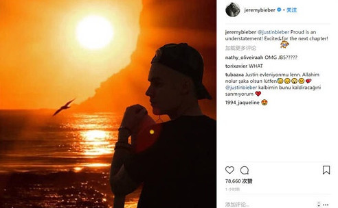 对此比伯的父亲在社交平台上回应:用骄傲描述太过轻描淡写,为人生的下一篇章而兴奋。疑似在祝福儿子求婚成功,为他未来人生篇章加油打气。