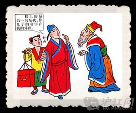 孙山笑着对邻居说:“孙山考了最后一名,你儿子的名字还在孙山的后面呢。”