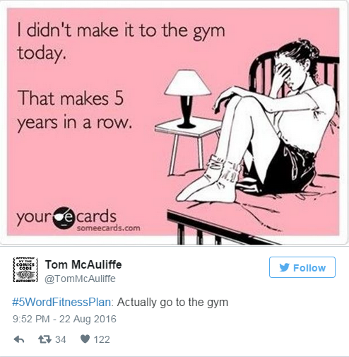 真的,去健身房吧。(图中文字:我今天没去健身房,连续5年都这样了。)
