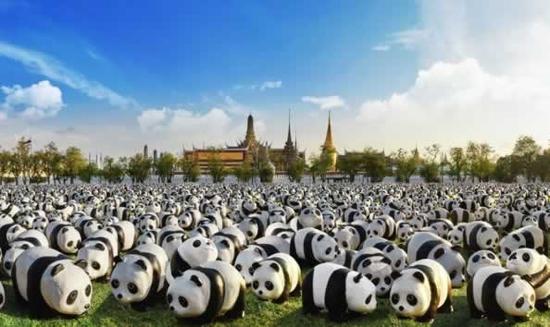 由1600只纸质熊猫组成的熊猫艺术展,提醒人们注意保护生态环境。1600只纸质熊猫的大象代表着自然界仅存的1600只熊猫。